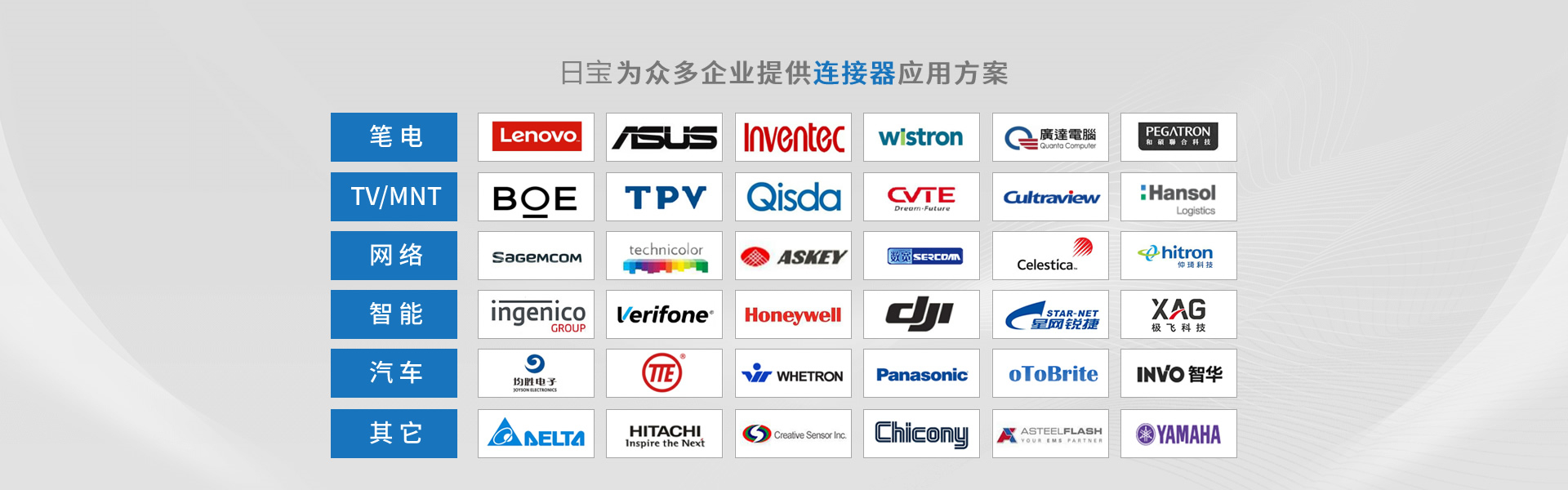 深圳市日寶電子科技有限公司創(chuàng)立于2015年,總部位于蘇州吳江區(qū),總部公司成立于2005年,是一家專業(yè)從事精密連接器設(shè)計(jì)、制造及銷售的高新科技企業(yè)。產(chǎn)品廣泛應(yīng)用于消費(fèi)電子、汽車電子、網(wǎng)絡(luò)通訊及工業(yè)電子設(shè)備、軍工、航天航空、醫(yī)療器械等領(lǐng)域。目前公司產(chǎn)品除本土市場外,更遠(yuǎn)銷歐、美、日等海外市場。 日寶電子注重長遠(yuǎn)發(fā)展,先后取得ISO9001/14001質(zhì)量與環(huán)境管理體系、IATF16949汽車質(zhì)量管理體系、ISO13485醫(yī)療器械質(zhì)量管理體系、UL,GB/T29490知識產(chǎn)權(quán)管理體系等認(rèn)證, 并加入HDMI、USB等協(xié)會。 為提升企業(yè)核心競爭力,公司大力推進(jìn)信息化與工業(yè)化的兩化融合建設(shè),先后導(dǎo)入ERP、PLM、CRM、SRM、MES及OA等系統(tǒng)管理軟件,不斷自我提升,為打造新一代智能制造標(biāo)桿企業(yè)不懈努力。 日寶電子擁有業(yè)界專業(yè)的電氣與機(jī)構(gòu)研發(fā)技術(shù)團(tuán)隊(duì),相繼獲得260余項(xiàng)發(fā)明和實(shí)用新型專利,在這日新月異的科技時代,堅(jiān)持以技術(shù)創(chuàng)新為導(dǎo)向,深度服務(wù)客戶...